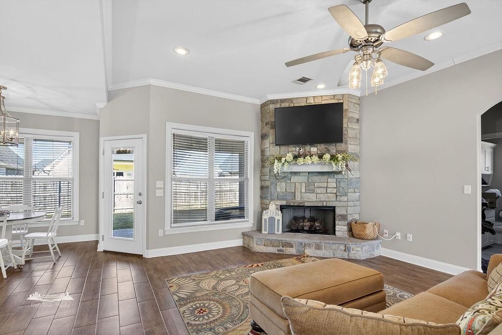 Welcome to the highly sought-after Jamestowne neighborhood, where comfort, style, and functionality come together beautifully! This 3-bedroom, 2-bath home offers 1,765 square feet of thoughtfully designed living space that is truly beautiful inside and out. Step inside to an open-concept layout featuring wood-look tile flooring throughout the main living areas, built-ins that add both charm and convenience, and a stunning stone fireplace that creates the perfect focal point for relaxing or entertaining. The home also offers a separate dining area and a dedicated office space for working from home or creating your own private retreat. The spacious primary suite is a true escape, complete with a large bedroom, relaxing atmosphere, and an oversized walk-in closet. Every detail of this home reflects care, cleanliness, and pride of ownership. Outside, enjoy quiet mornings or evening gatherings on the covered patio overlooking a peaceful setting. Nestled on a quiet cul-de-sac street, this home offers both privacy and a welcoming neighborhood feel. Homes like this don?t come around often?schedule your showing today and come see everything this incredible property has to offer!